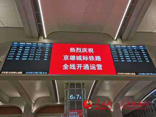 人民網雄安12月27日電 今天,京雄城際鐵路實現全線開通運營。上午10時18分,由雄安站發往北京西站的C2702次列車正式發車,將於11時直達北京西站,全程歷時42分鐘。