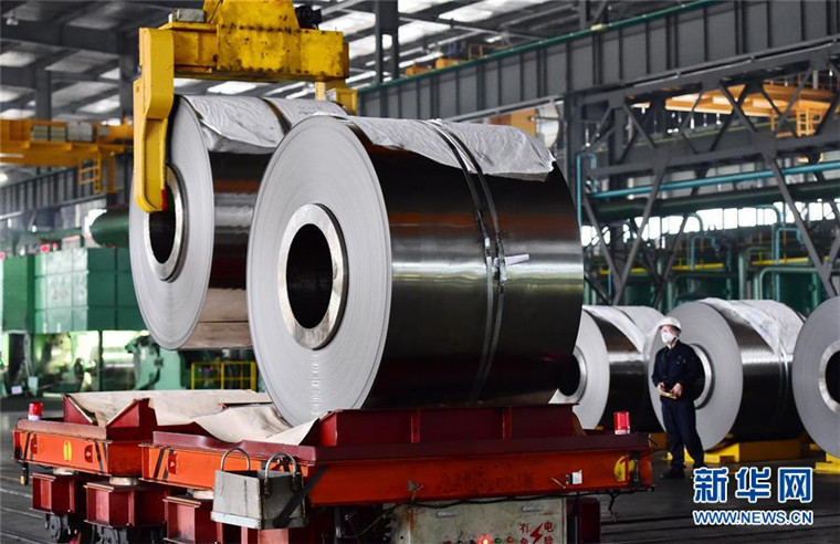在青拓集团大门口,记者看到,戴着口罩、手拿测温仪的工作人员寸步不离,园区内数名工作人员正在进行消毒。人测过体温、车做过消杀后,记者进入这家现代化的不锈钢企业。