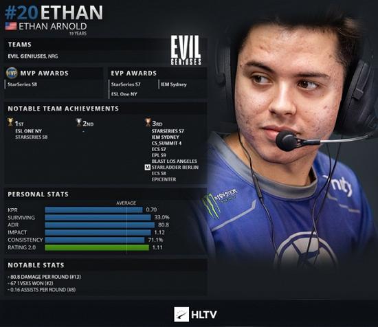 Ethan凭借自己在2019年的出色表现和在队内扮演的重要角色,成为了2019年HLTV年度最佳选手首位揭晓选手。
