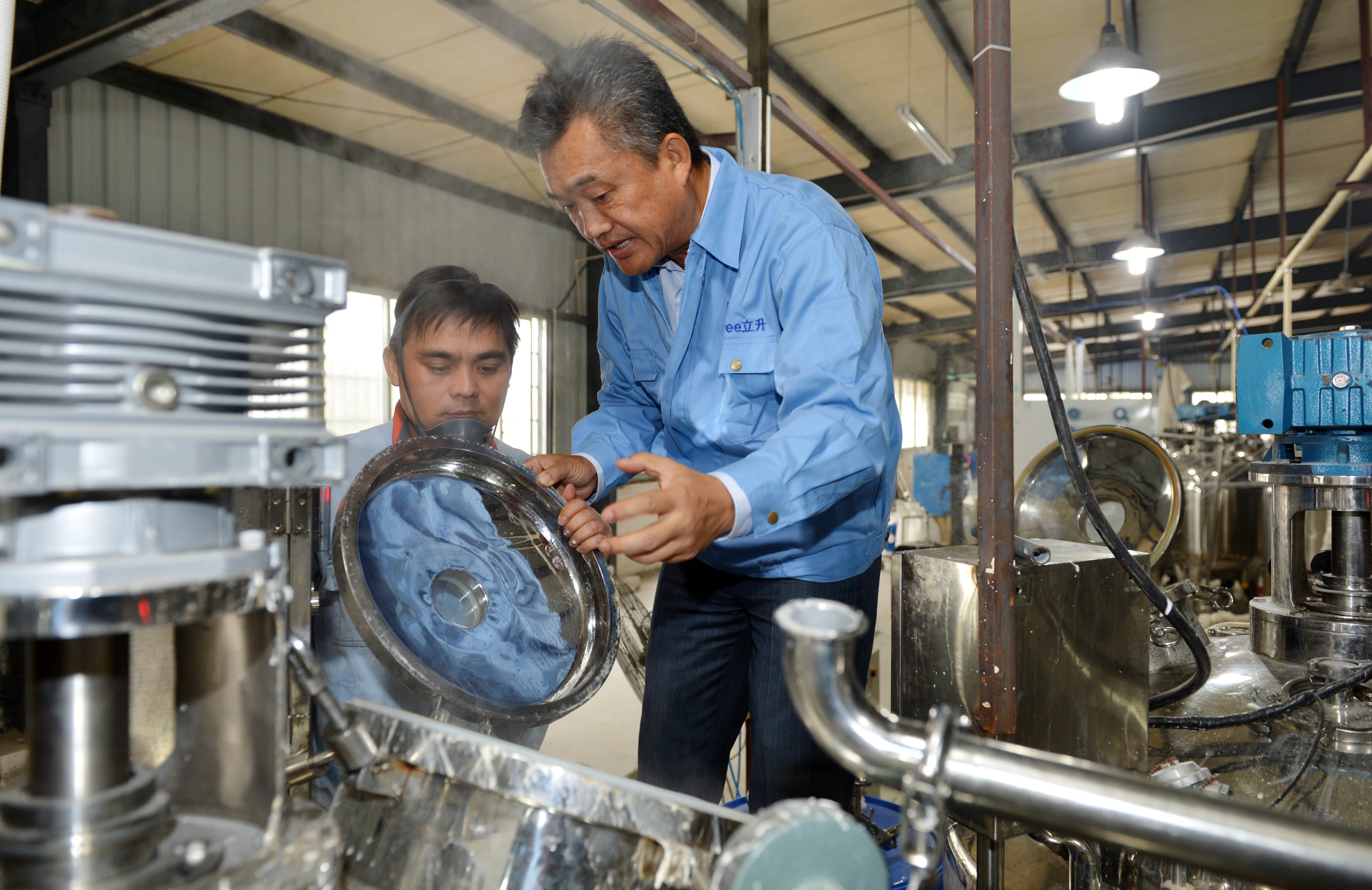 立�N公司董事长陈良刚在车间工作。王凯摄影。